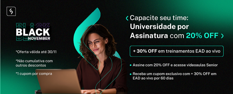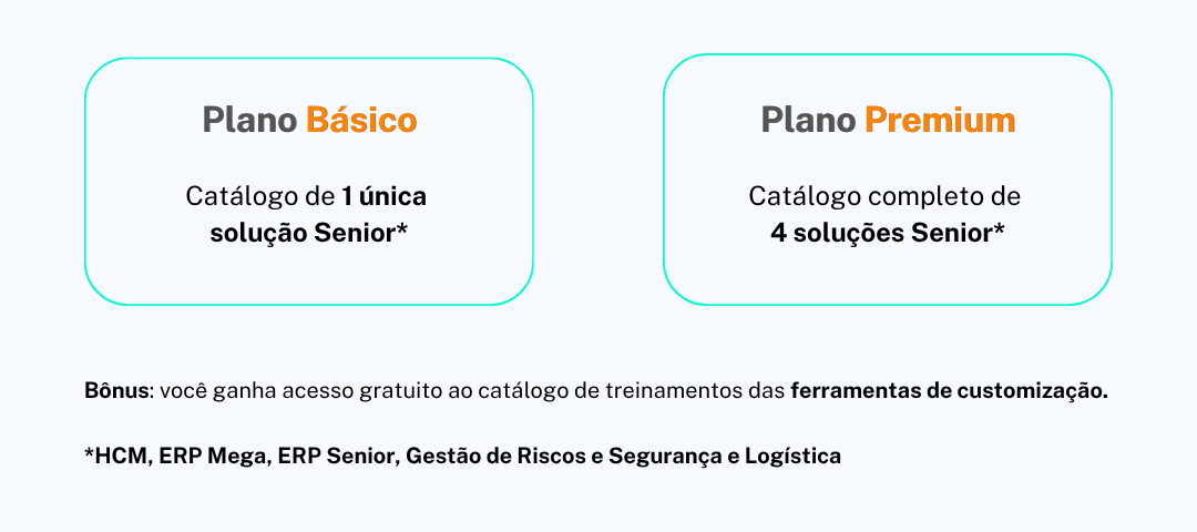 Com uma assinatura única, você libera acesso às videoaulas sobre as soluções Senior – Gestão de Pessoas | HCM, Gestão Empresarial | ERP Senior, Gestão Empresarial | ERP Mega, Gestão de Logística, Gestão de Riscos e Segurança e Ferramentas da Senior Flow, além de testes de conhecimentos, emissão de certificados e relatórios de aprendizado.